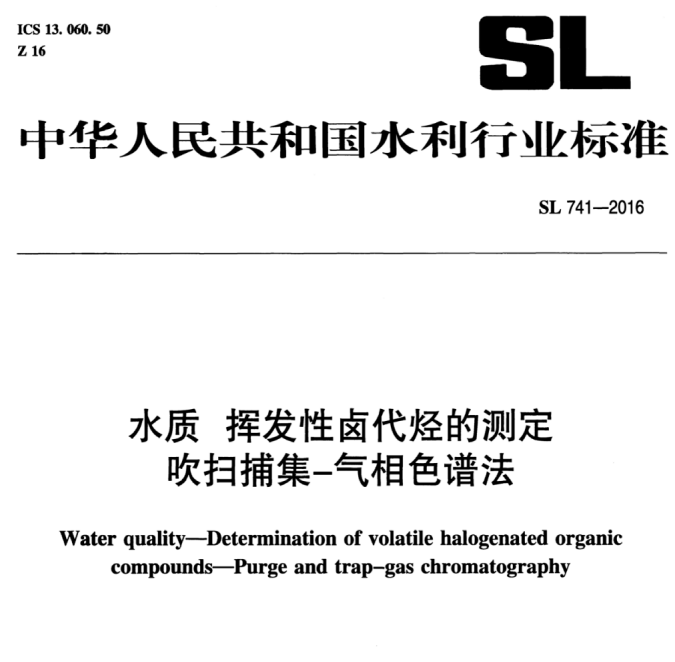 SL 741-2016 水質(zhì) 揮發(fā)性鹵代烴的測定吹掃捕集-氣相色譜法 GB/T17130-1997水質(zhì)揮發(fā)性鹵代烴的測定頂空氣相色譜法 本標(biāo)準(zhǔn)適用于水中揮發(fā)性鹵代烴(三... 更新日期:2020-05-06 下載包(1)
